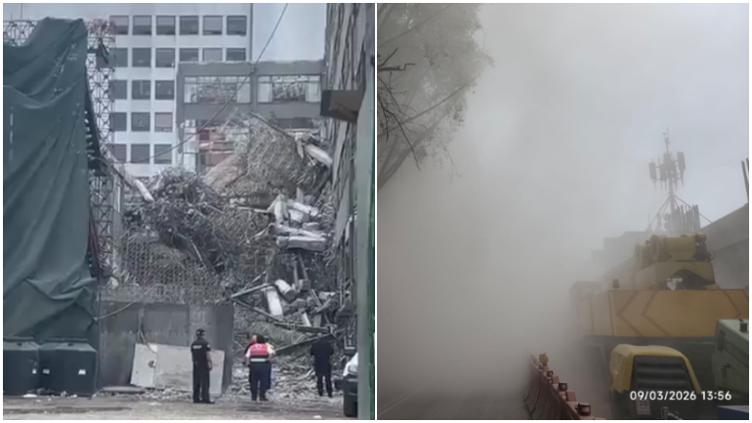En la escena, trabajadores hacían demoliciones, cuando ocurrió un derrumbe no controlado, por lo que quedaron cinco personas entre los escombros.