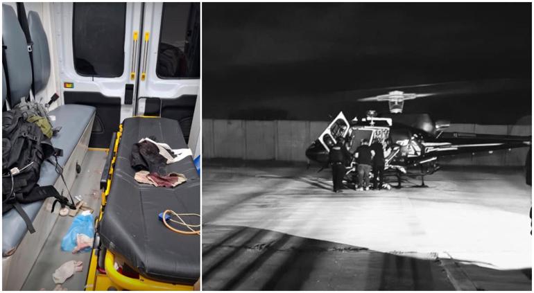 Tras la agresión de sujetos armados, un oficial resultó con heridas por esquirlas, por lo que recibió primeros auxilios de sus compañeros y luego fue estabilizado en el helicóptero.