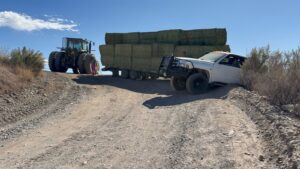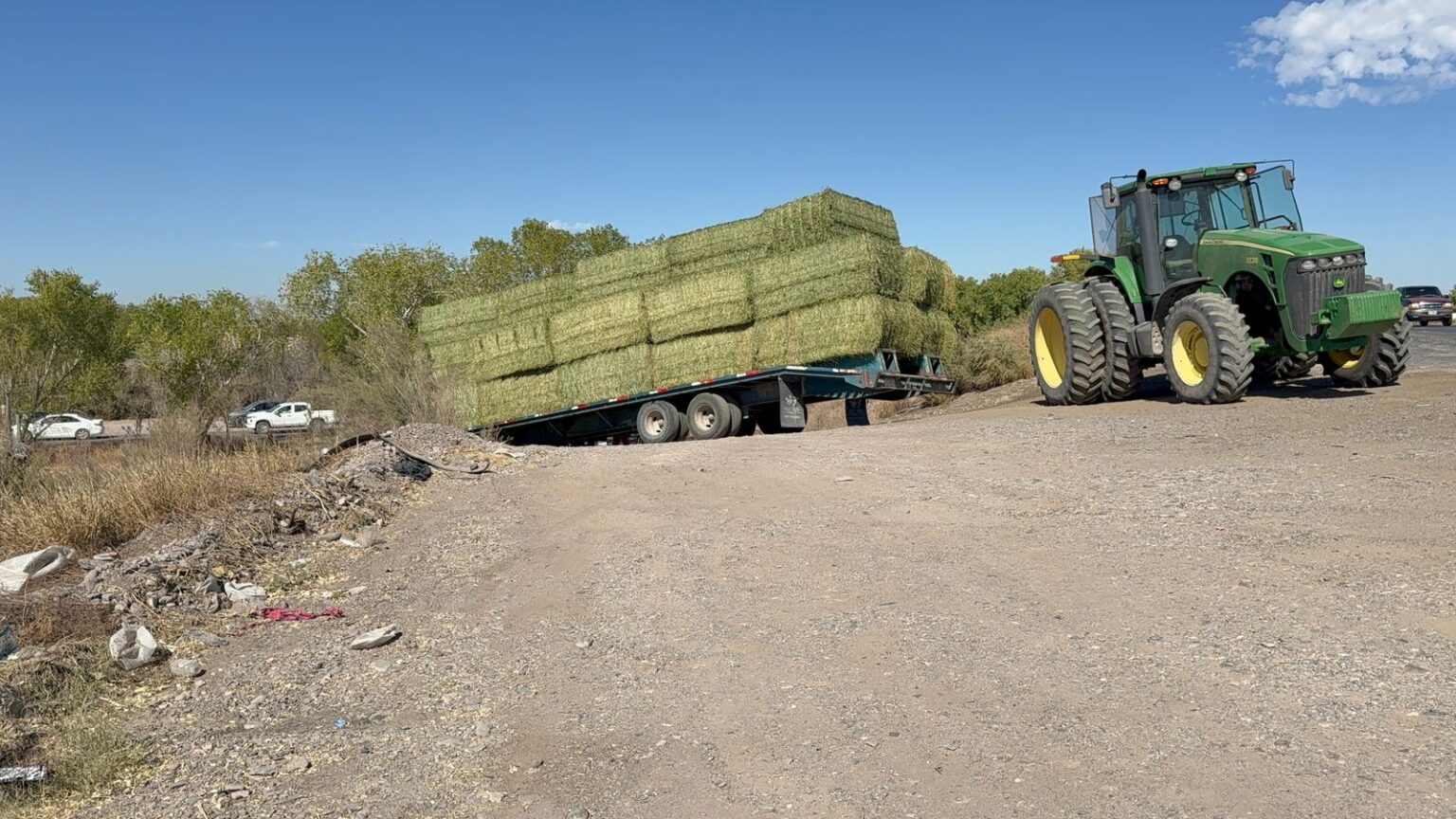 Cd. Meoqui, Chih.- Durante esta tarde se registró un incidente vial en el municipio de Meoqui, donde una camioneta tipo pickup que transportaba pacas presentó una salida de camino, sin que el hecho derivara en una volcadura.